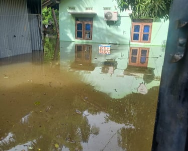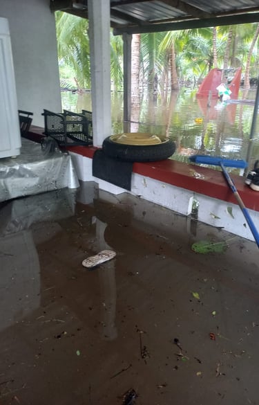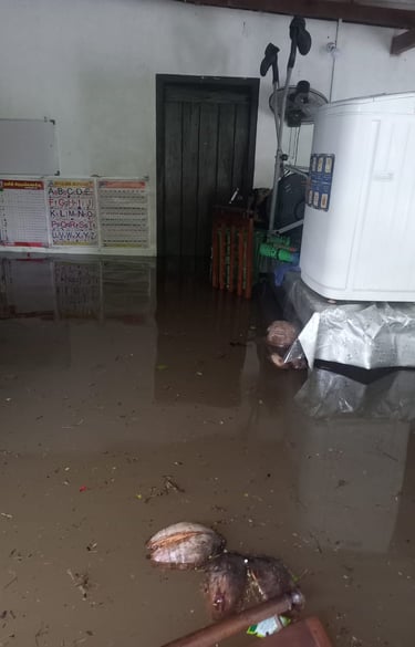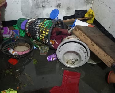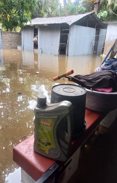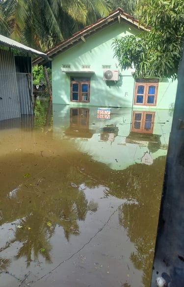 The recent severe weather, referred to as the Ditwa Cyclone, has resulted in massive and destructive flooding across several low-lying communities. The images documented show water inundating homes, rising above furniture, and destroying vital household belongings, including beds, kitchens, and educational materials for children. This is a severe humanitarian crisis requiring immediate intervention.